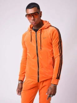 Veste De Jogging Velvet Ă Capuche Fausse Fourrure Patch Strass, Effet Biker
