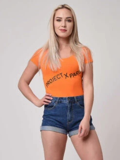 Body à manches courtes et encolure agrandie pour un look sexy. Logo Project X Paris imprimé sur poitrine.