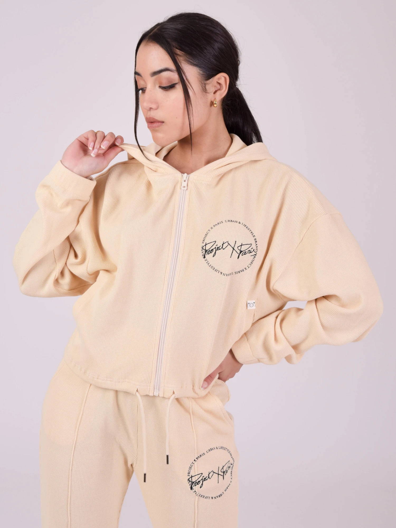 - Cordon de serrage en bas du vĂȘtement