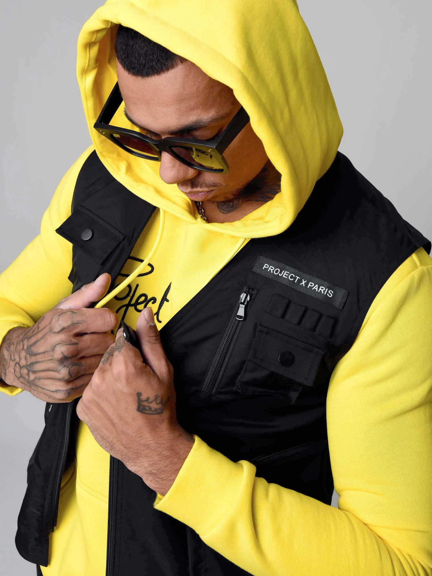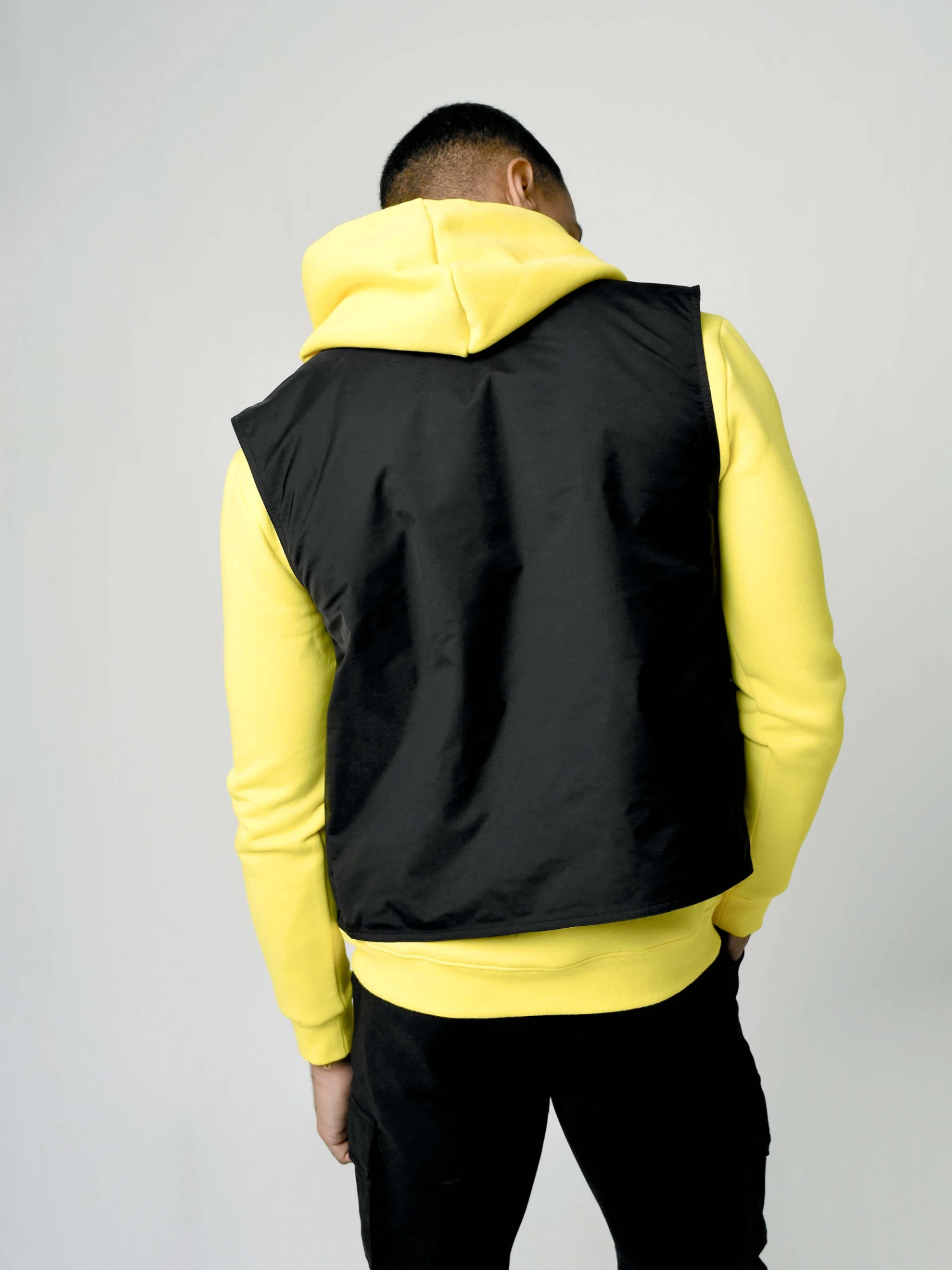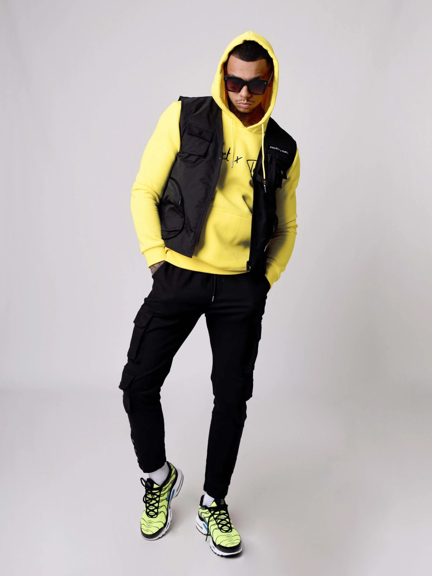 A porter avec un hoodie et un bas de jogging.