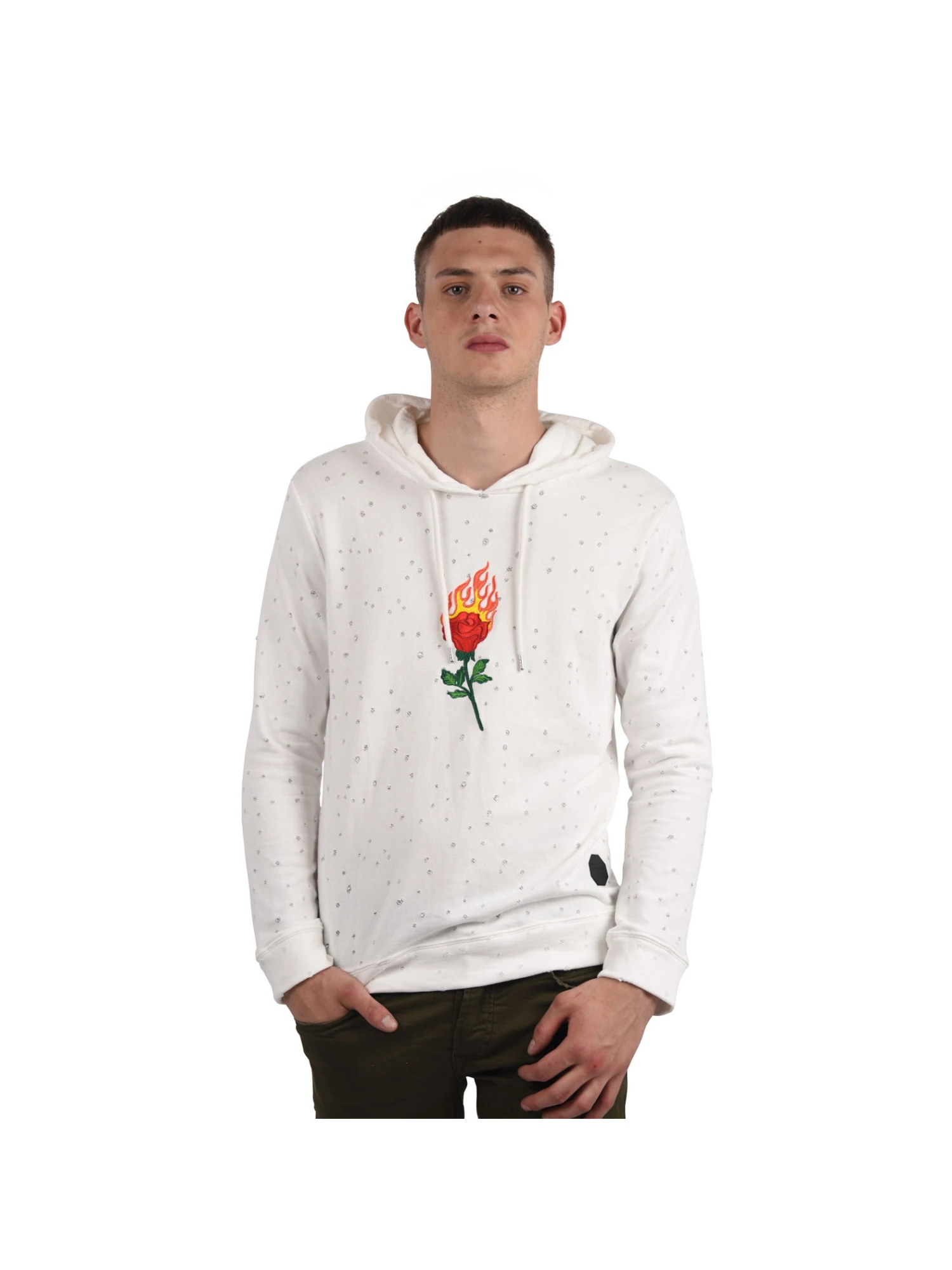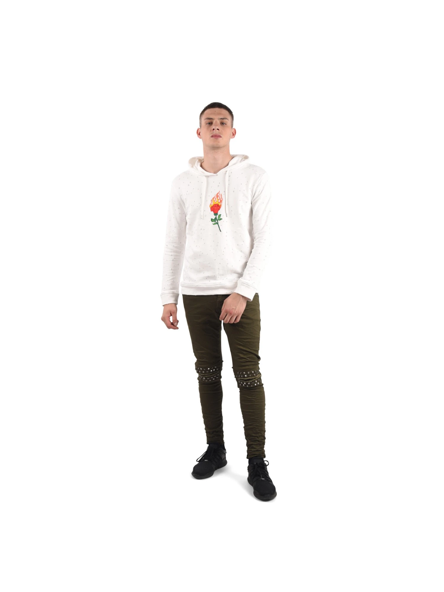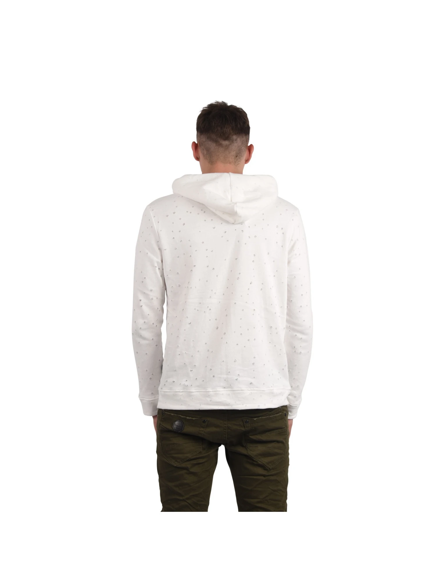 - Effet usĂ© et froissĂ© sur l’ensemble du sweat