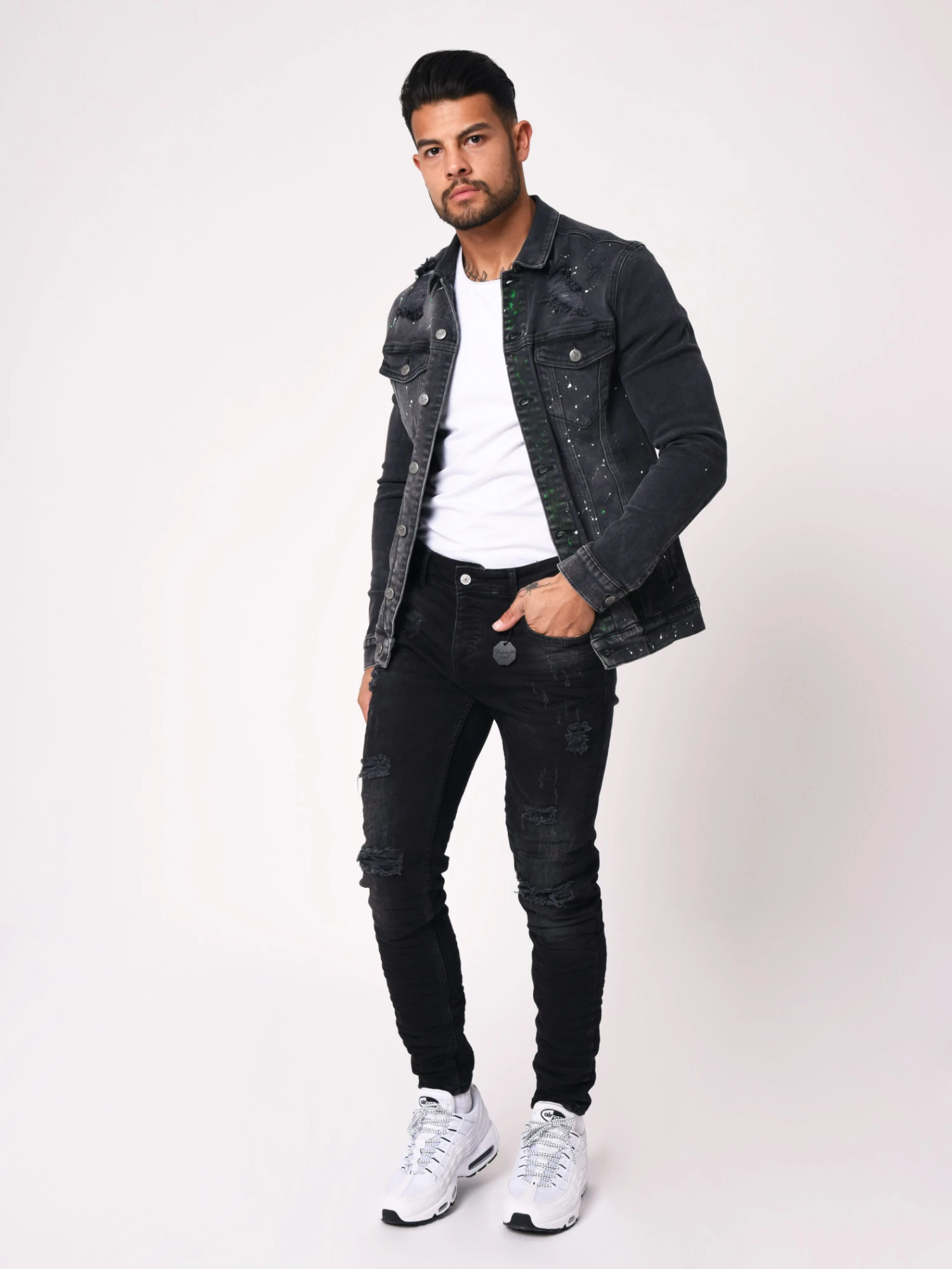 - Effet vaporisé blanc aux niveau des poches