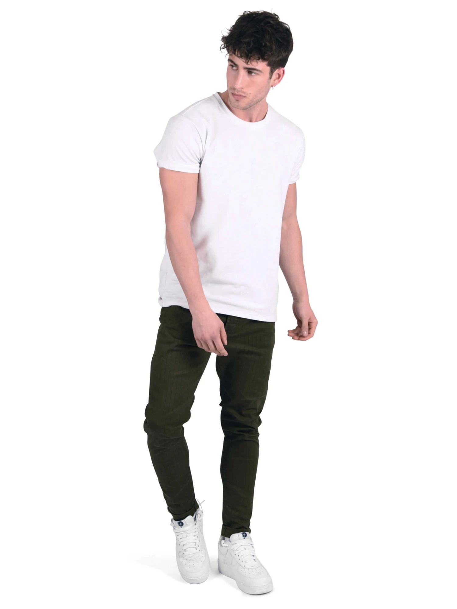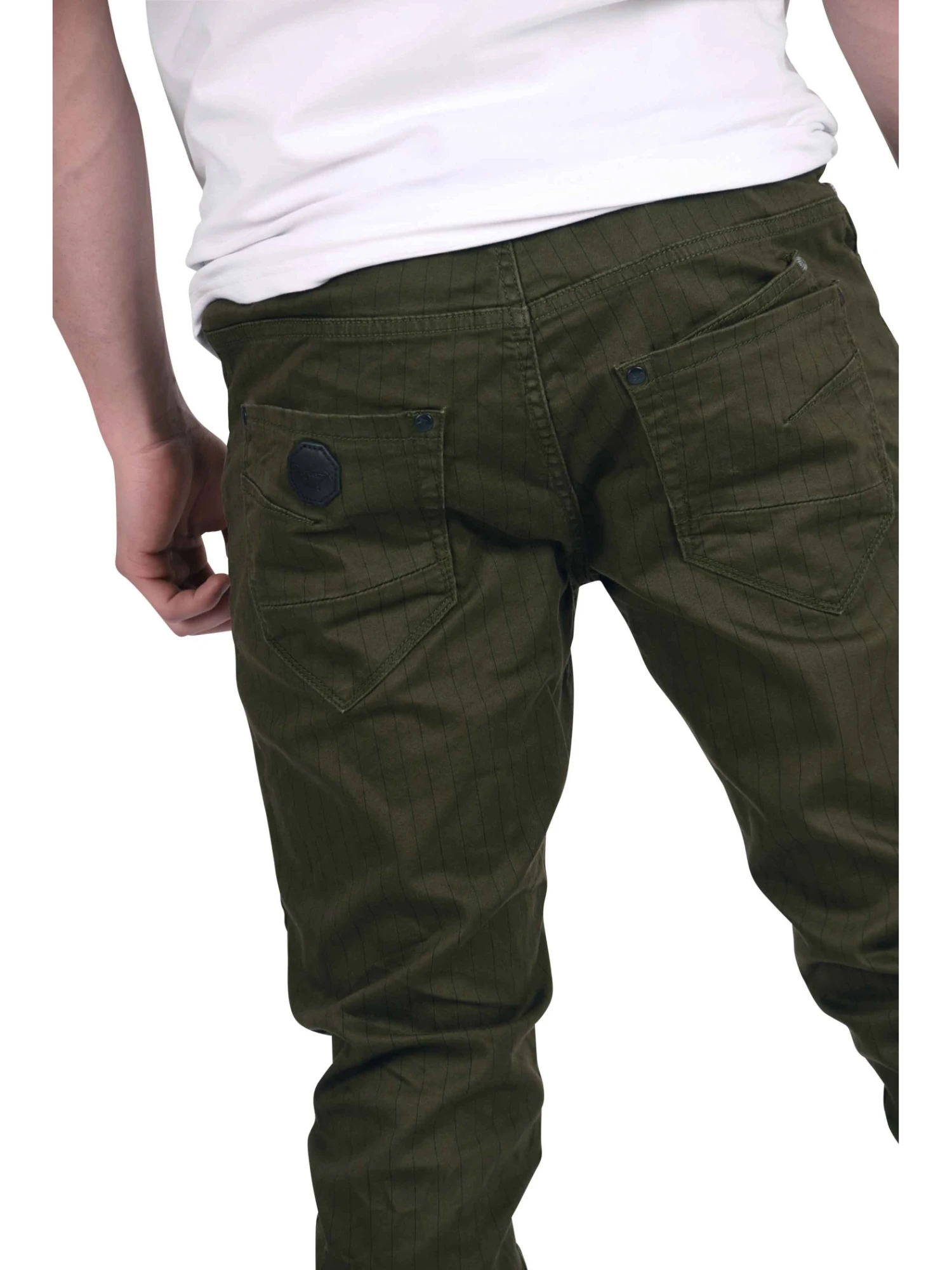 Pour parfaite alliance entre street et chic, on opte pour ce pantalon slim Ă rayures fines.