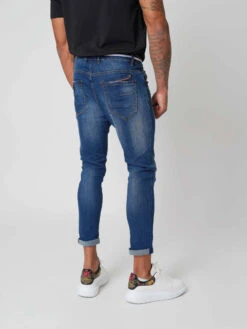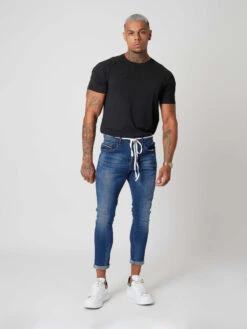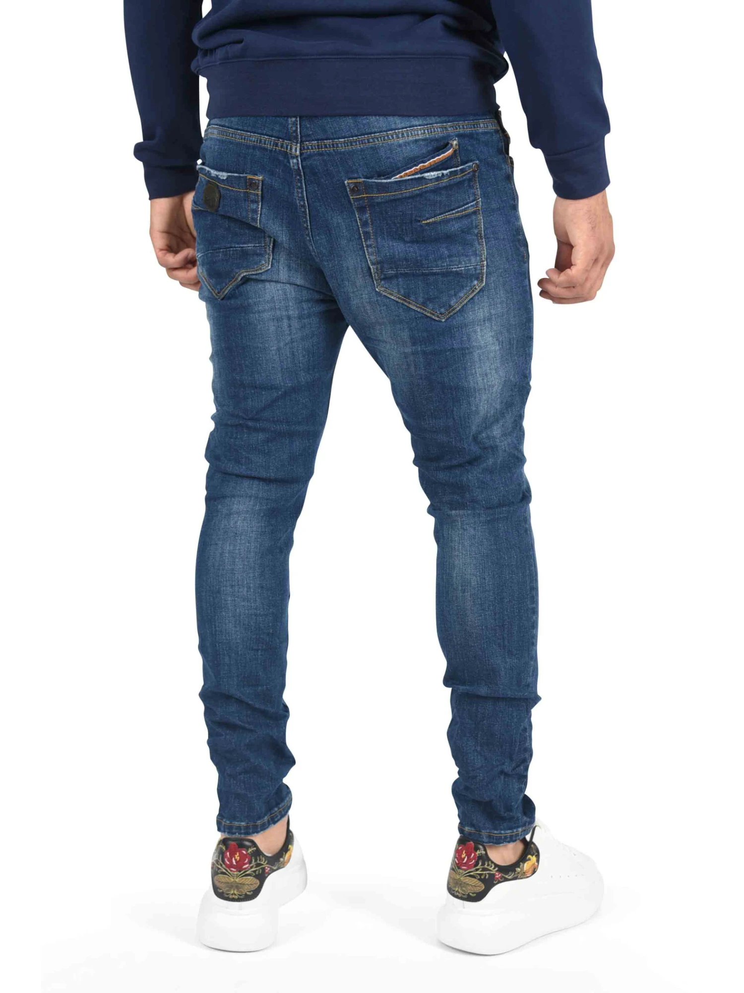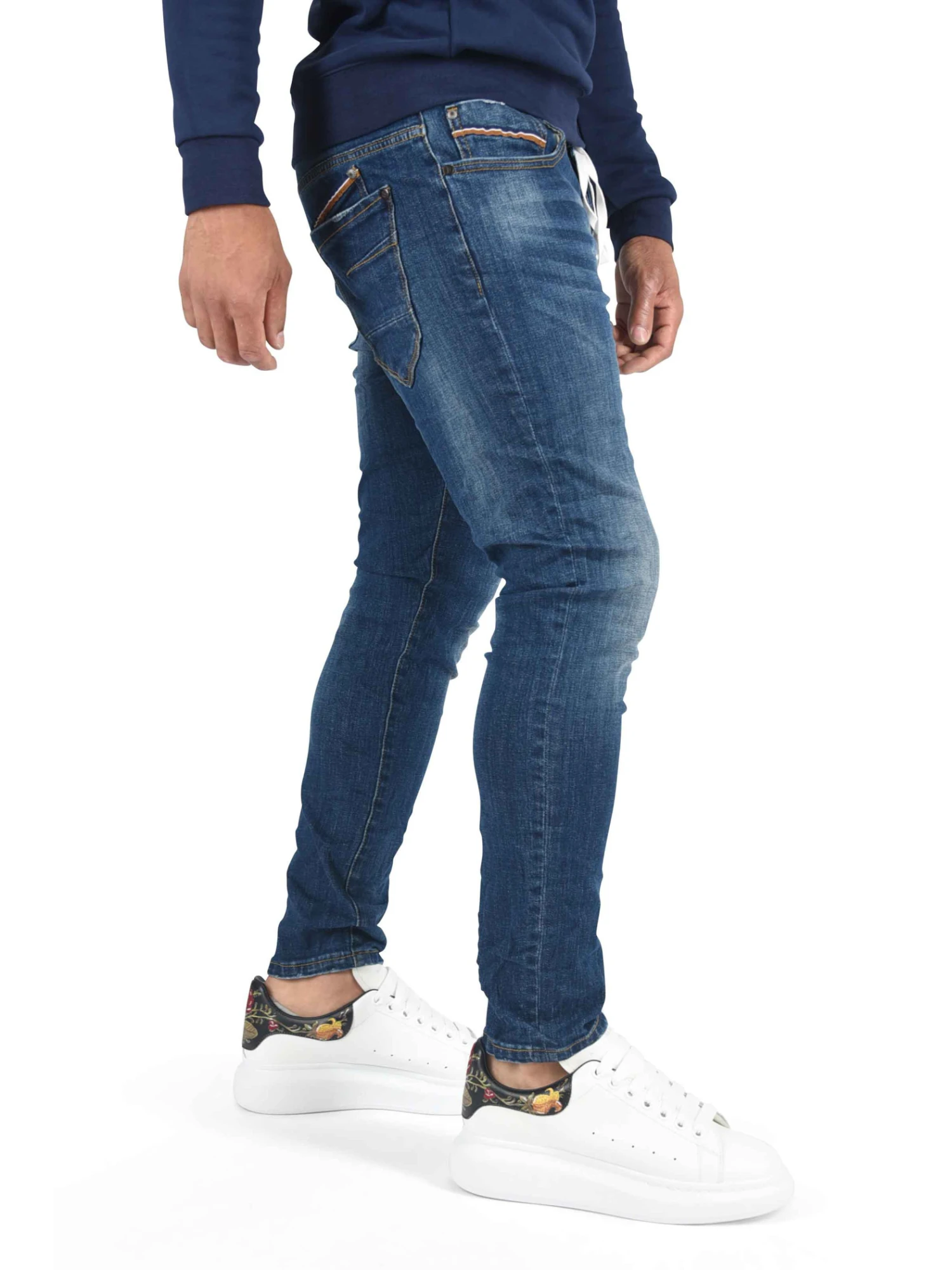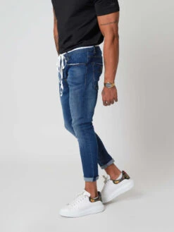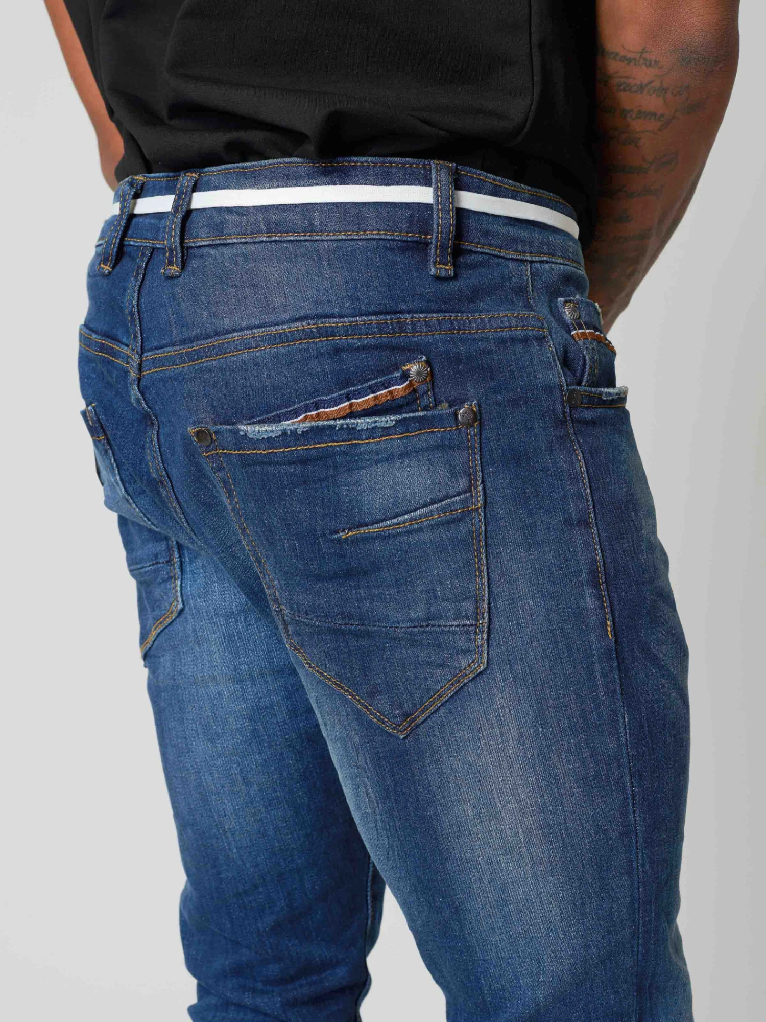 Ce jean à la coupe slim est légèrement délavé à l’avant. II possède des petites bandes colorées au niveau de la poche. Cette pièce s’accommodera à merveille avec toutes