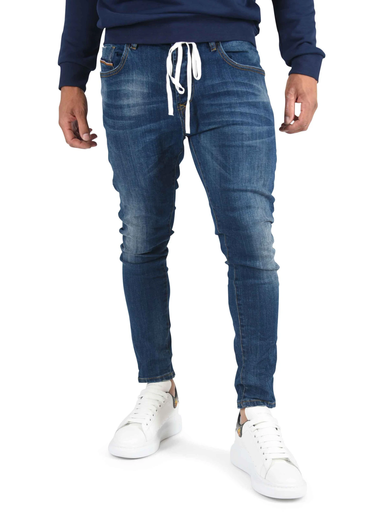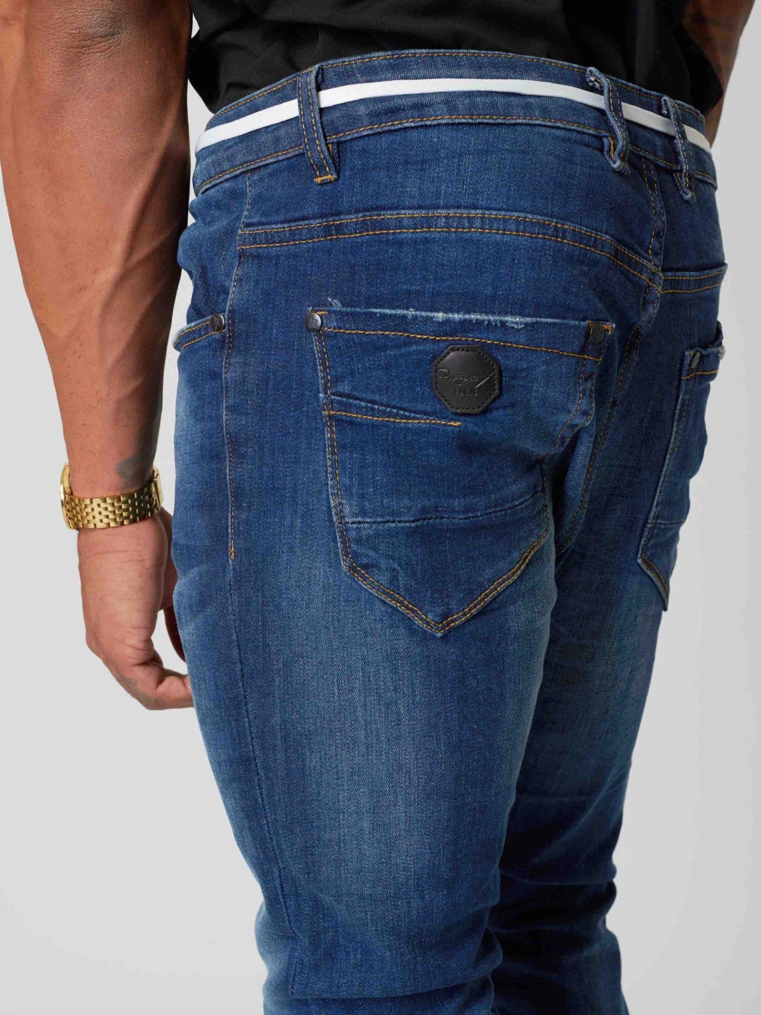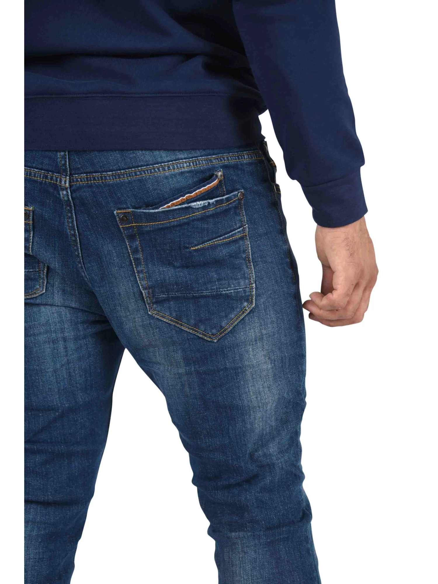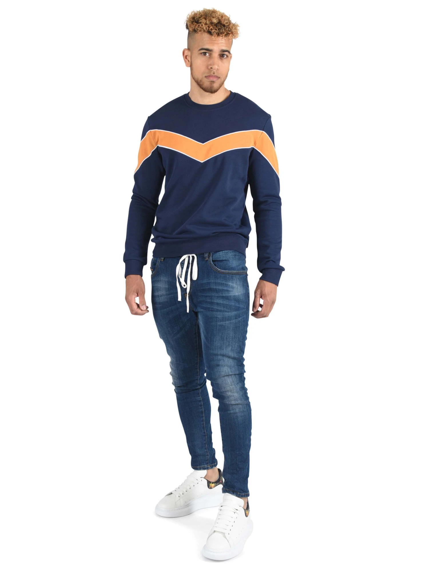 Ce jean à la coupe slim est légèrement délavé à l’avant. II possède des petites bandes colorées au niveau de la poche. Cette pièce s’accommodera à merveille avec toutes