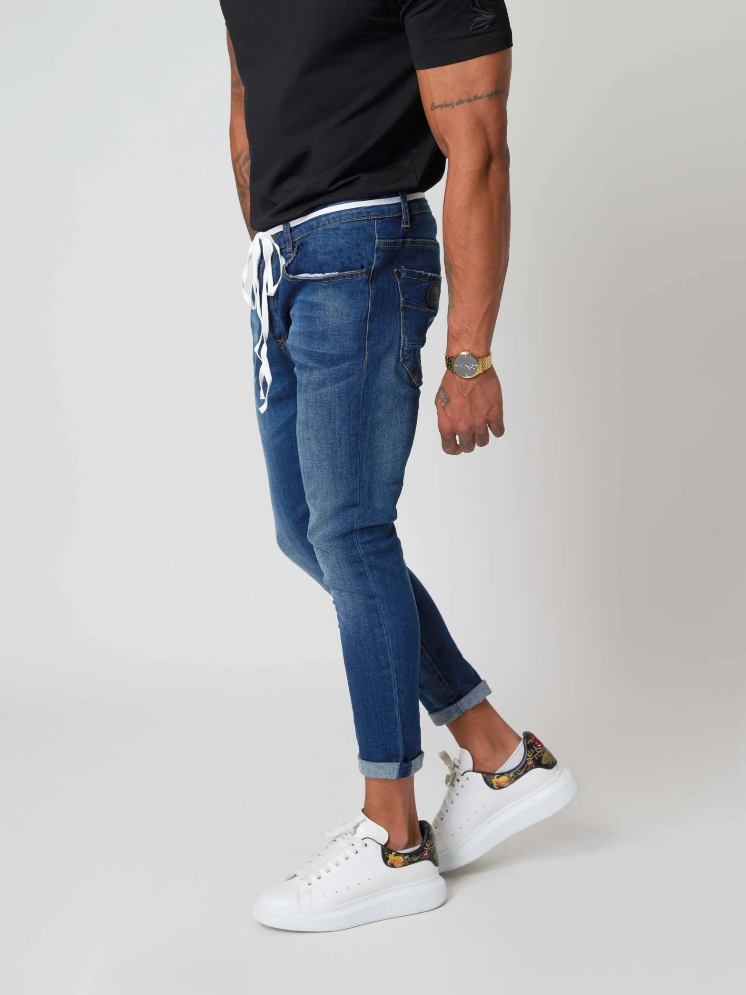 Petit conseil mode: retrousser le bas de ce jean pour un style plus travaillé.