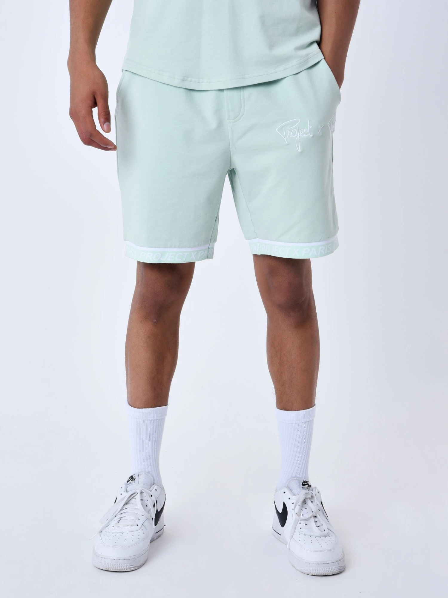- logotée en bas du short