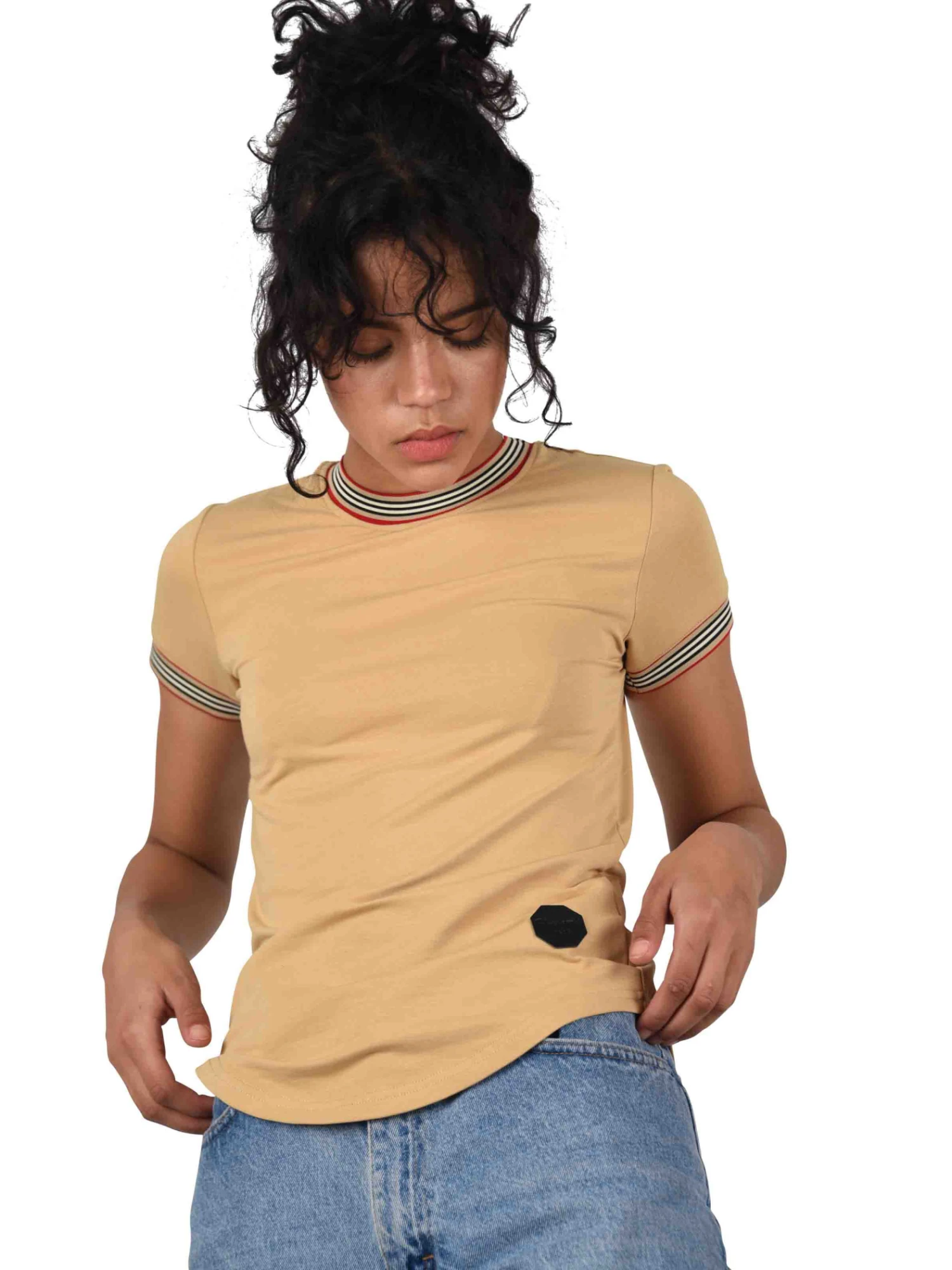 Tee-shirt doté de bord-côte au niveau du col et des manches.