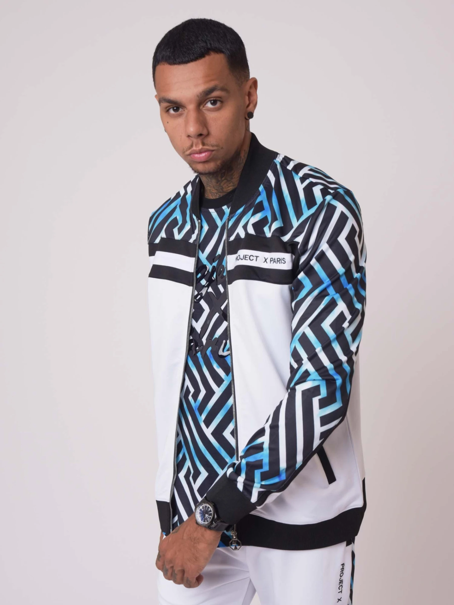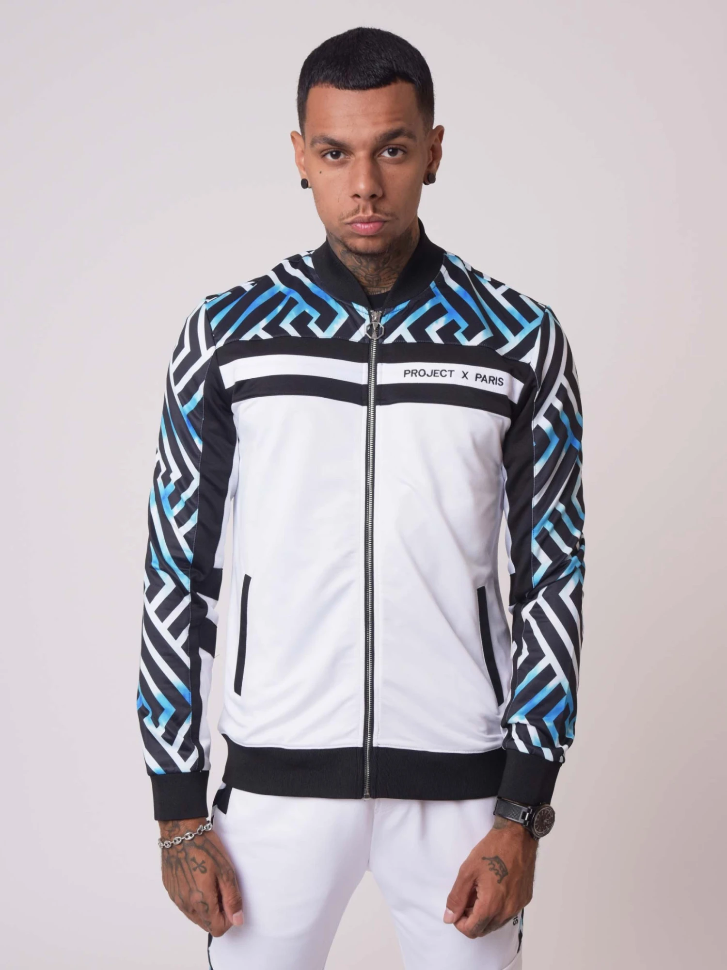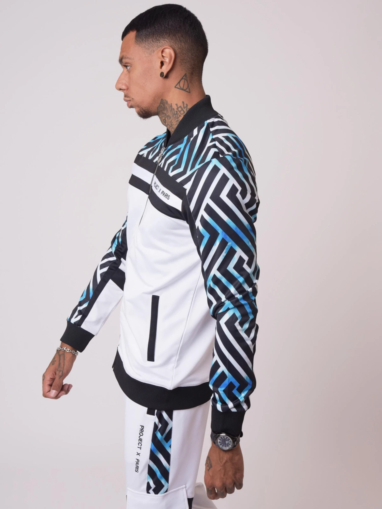 - Empiècement motif graphique sur les manches, le devant et le dos