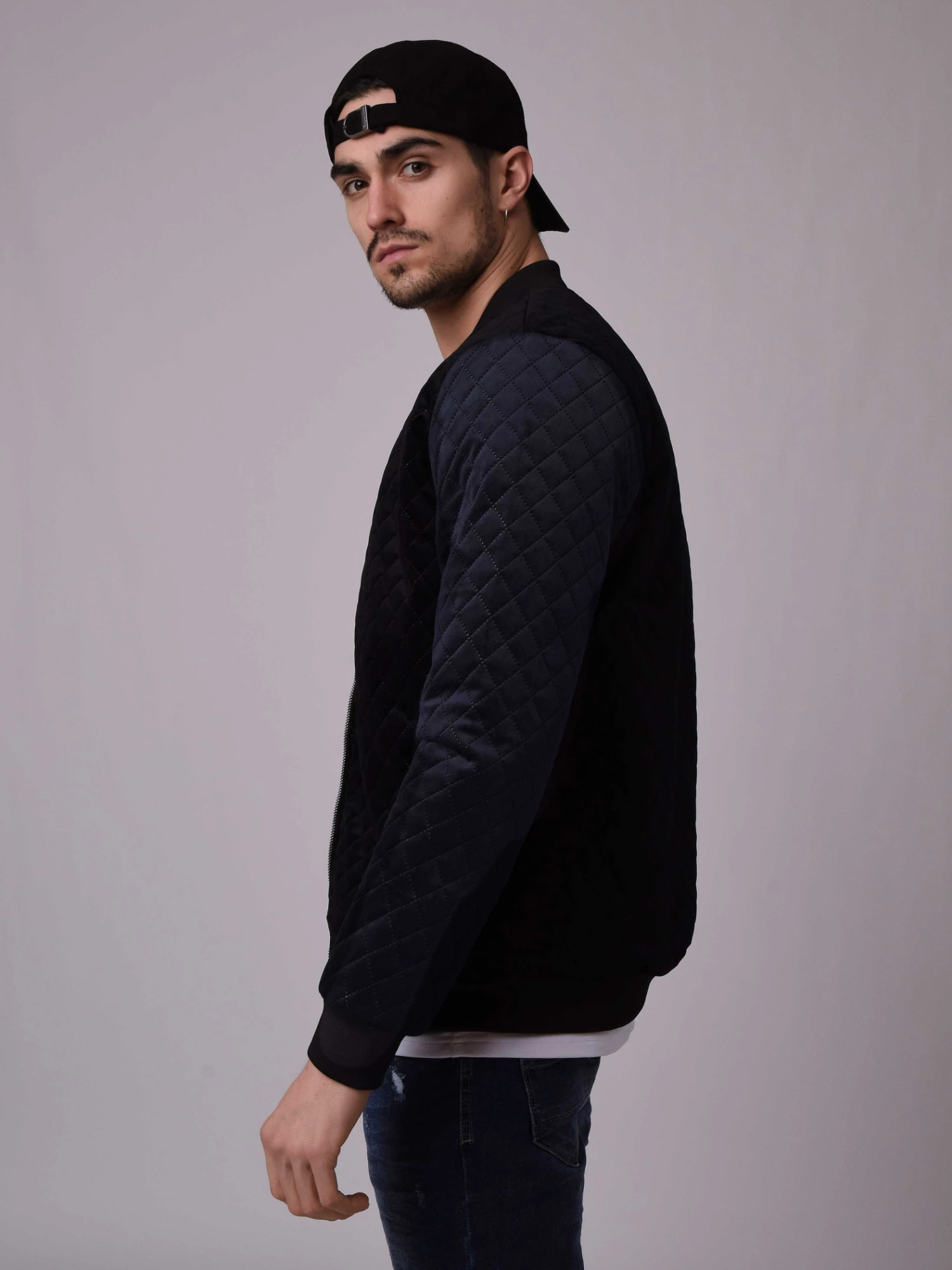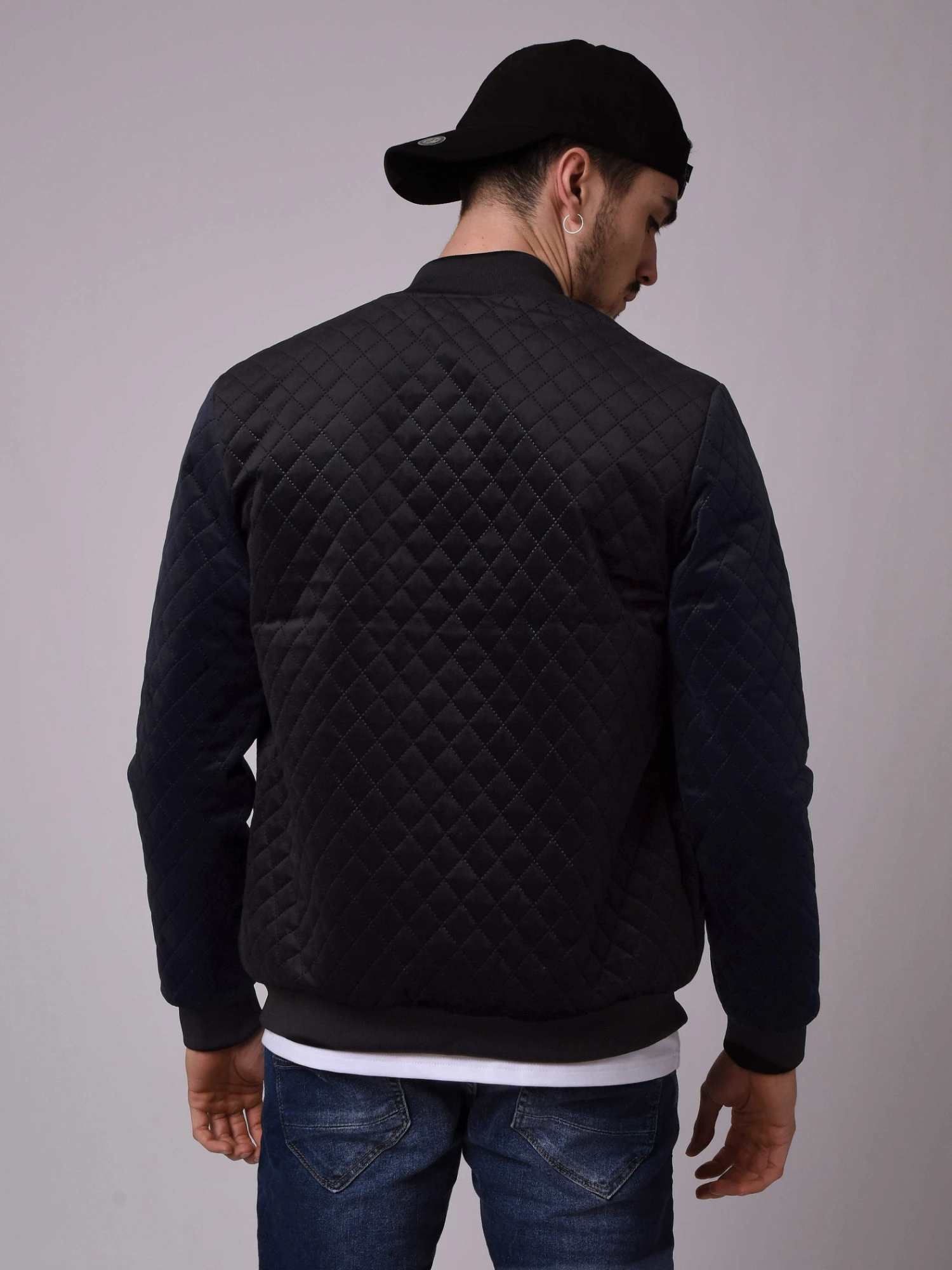 Chic et hype à la fois, cette veste en velours est matelassé sur le devant et sur les manches. Son jeu de couleurs est discret car elle est noire sur le corps et bleu marine sur les manches. A porter avec un jean bleu brut ou un pantalon carotte.